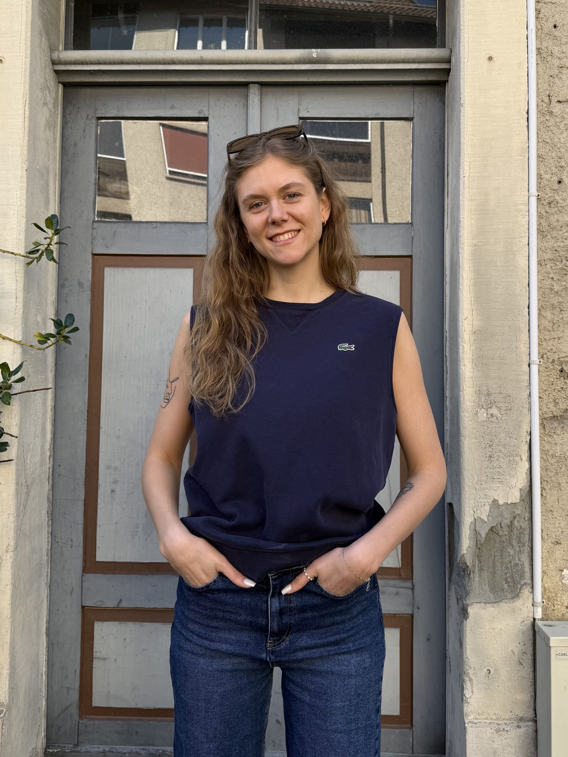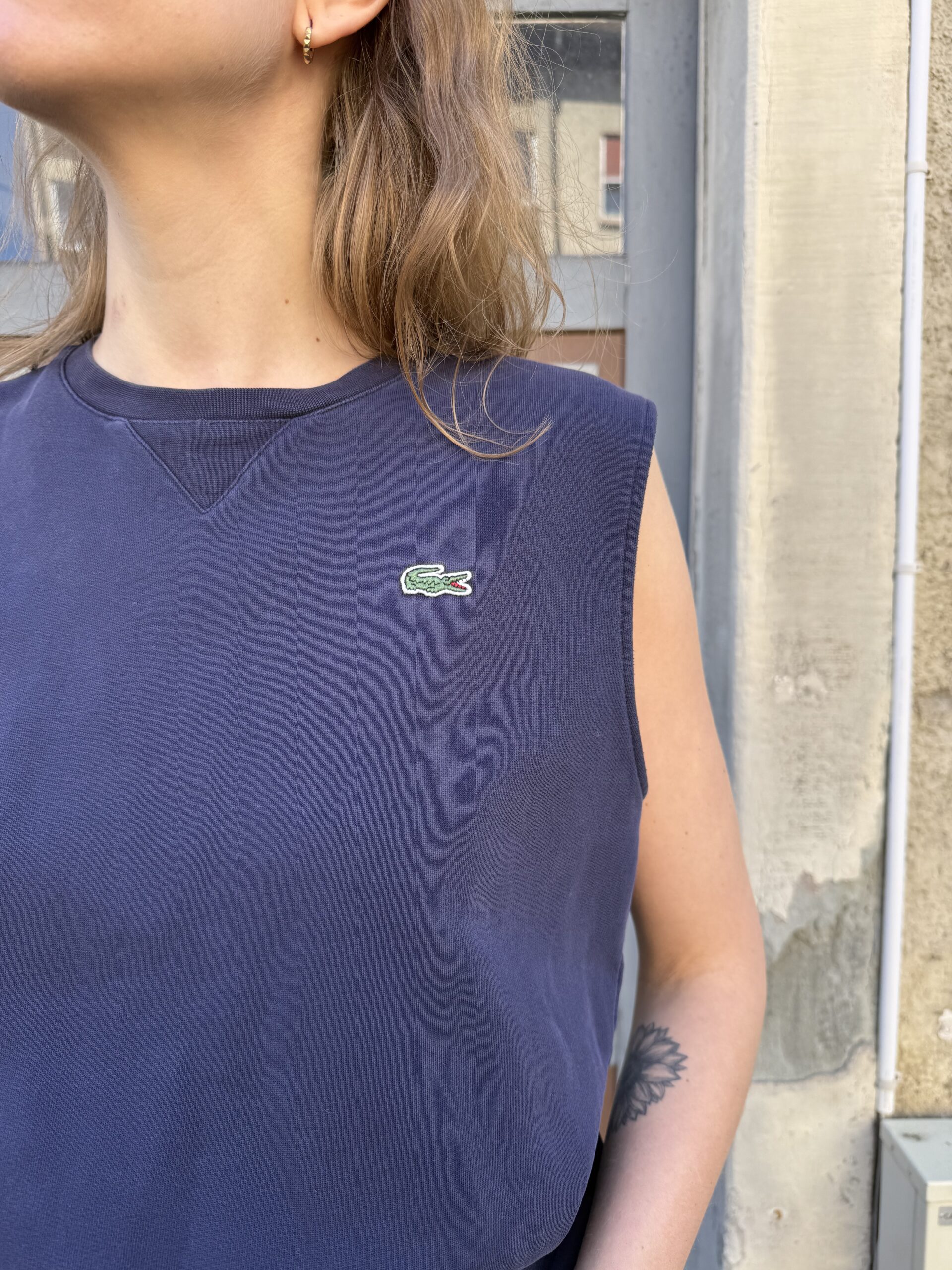 Dieser upcycelte Lacoste Pullover wurde mit viel Liebe zum Detail neu gestaltet und in eine moderne Form gebracht.