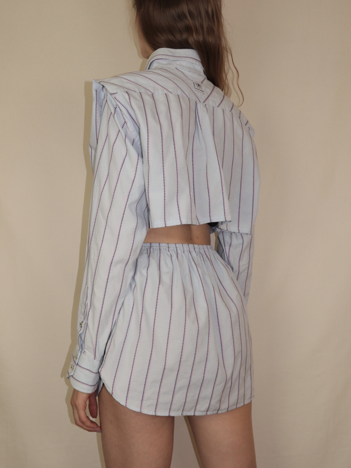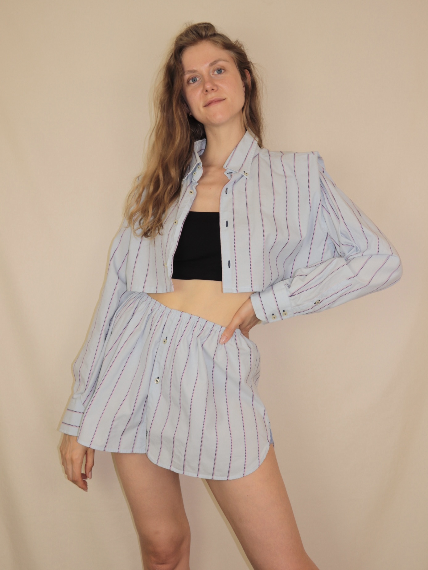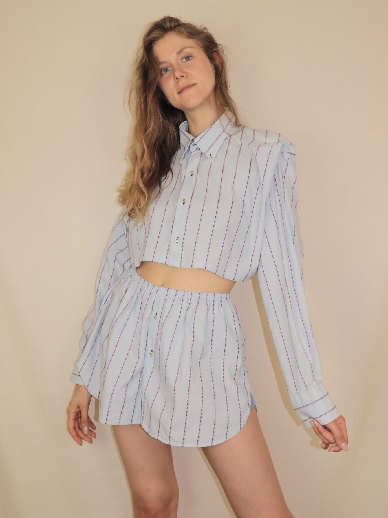 Dieses handgemachte Upcycling-Set besteht aus Rock und Oberteil – beide gefertigt aus einem einzigen Hemd, mit ganz viel Liebe. Jeder Zweiteiler ist ein Unikat, nachhaltig produziert und perfekt für warme Sommertage, Festivals oder einfach, wenn du Lust auf ein besonderes Outfit hast, das niemand sonst trägt.