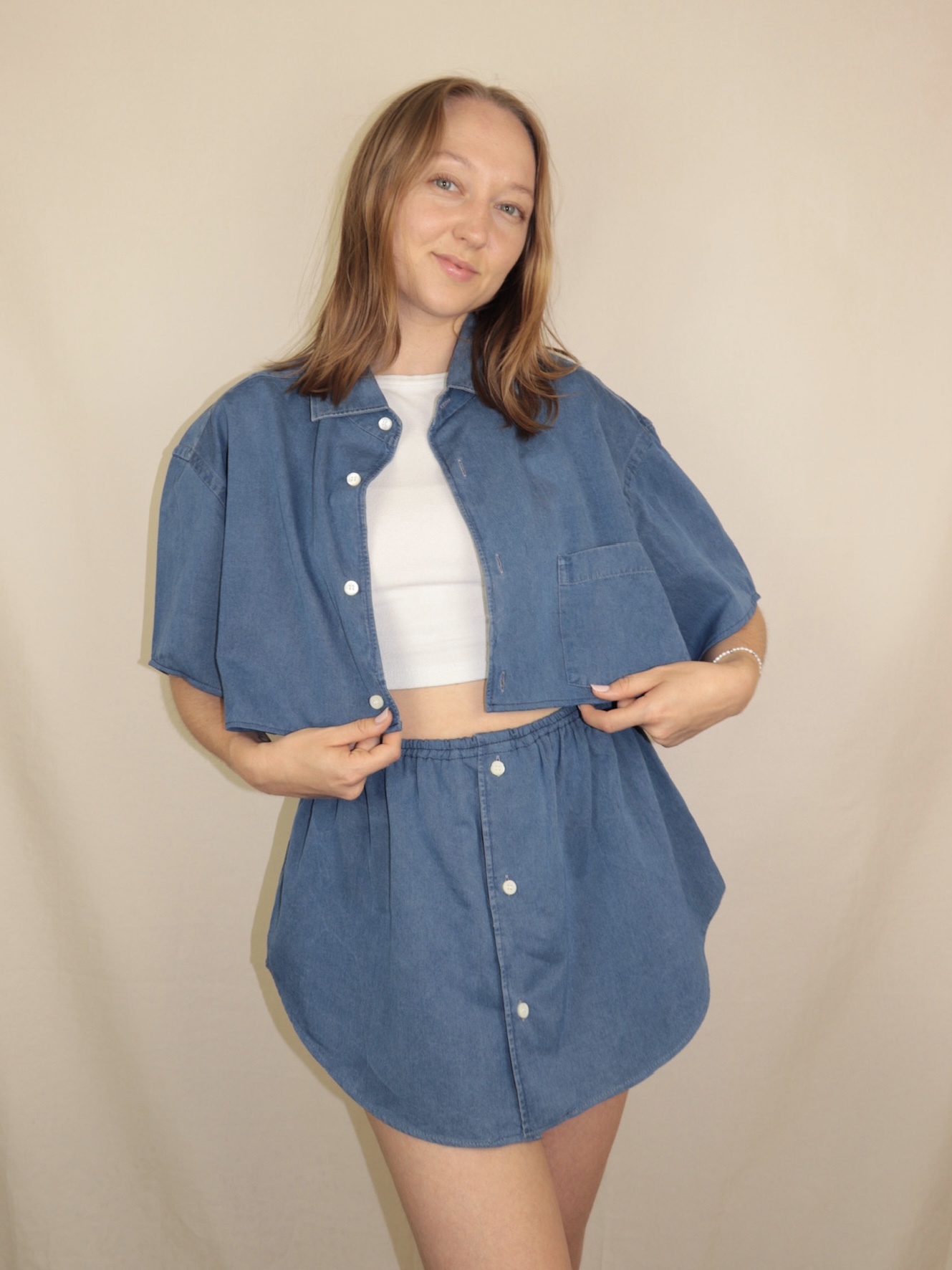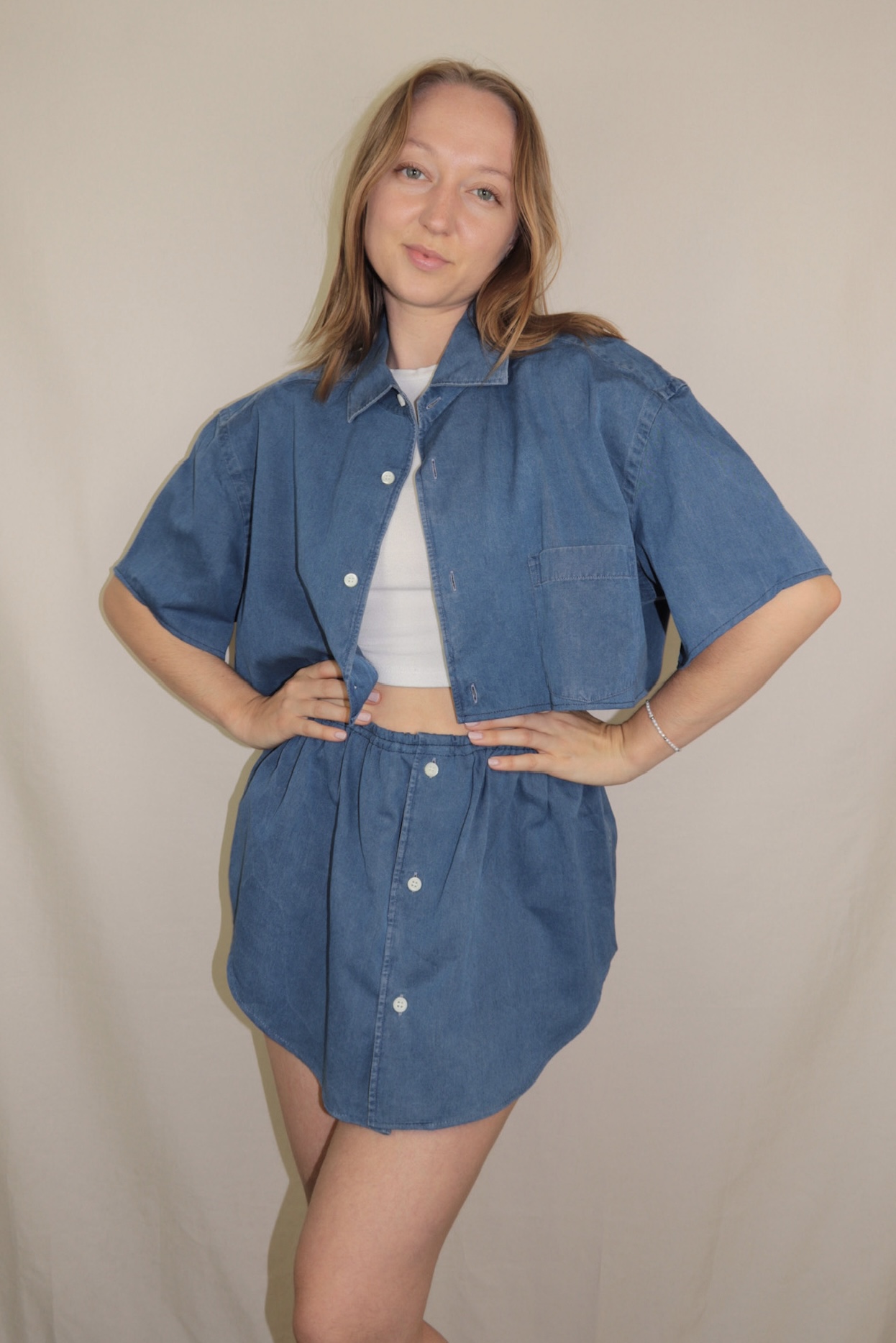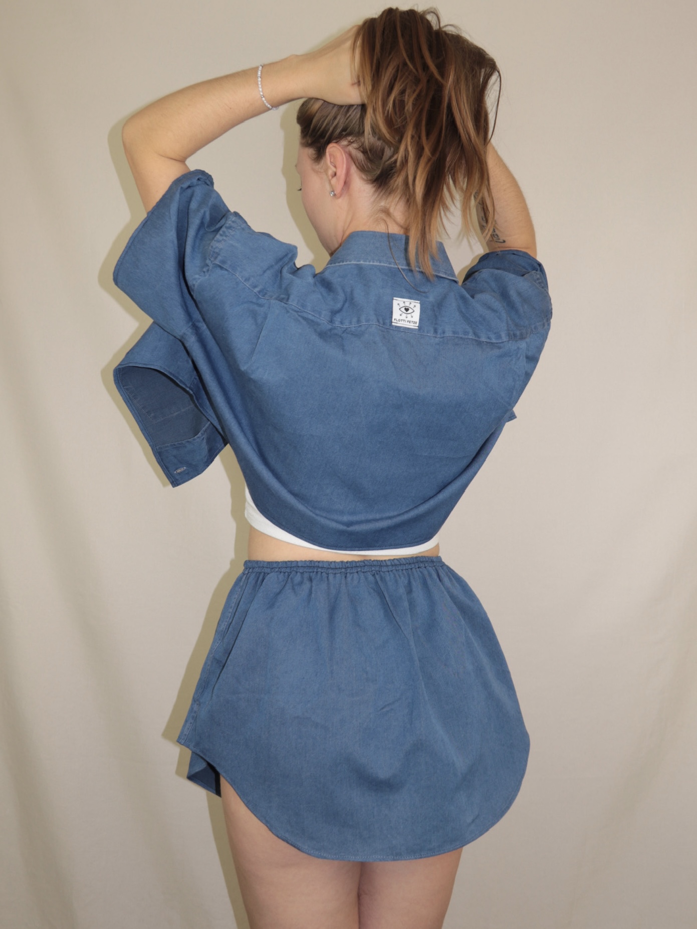 Dieses handgemachte Upcycling-Set besteht aus Rock und Oberteil – beide gefertigt aus einem einzigen Hemd, mit ganz viel Liebe. Jeder Zweiteiler ist ein Unikat, nachhaltig produziert und perfekt für warme Sommertage, Festivals oder einfach, wenn du Lust auf ein besonderes Outfit hast, das niemand sonst trägt.