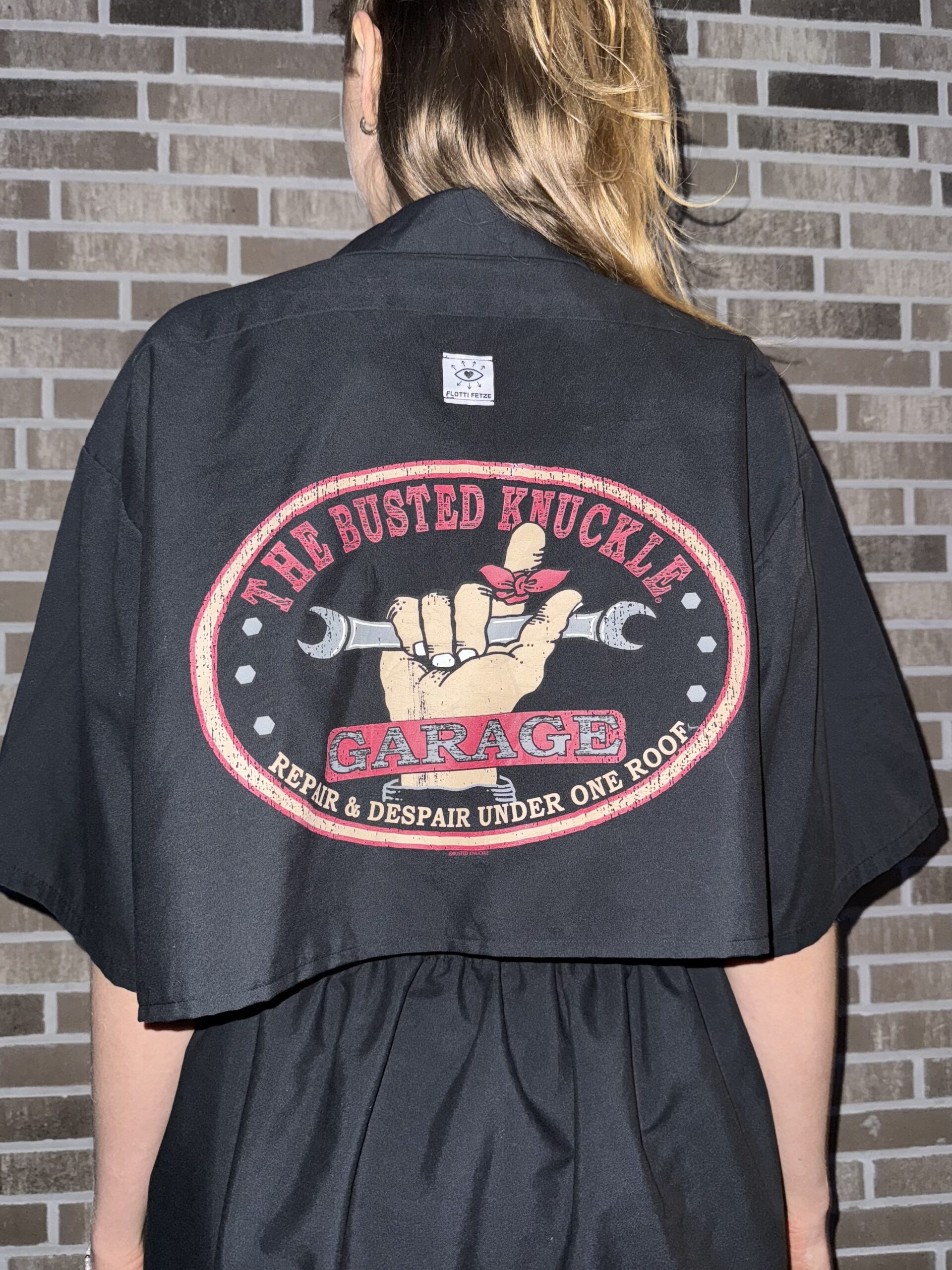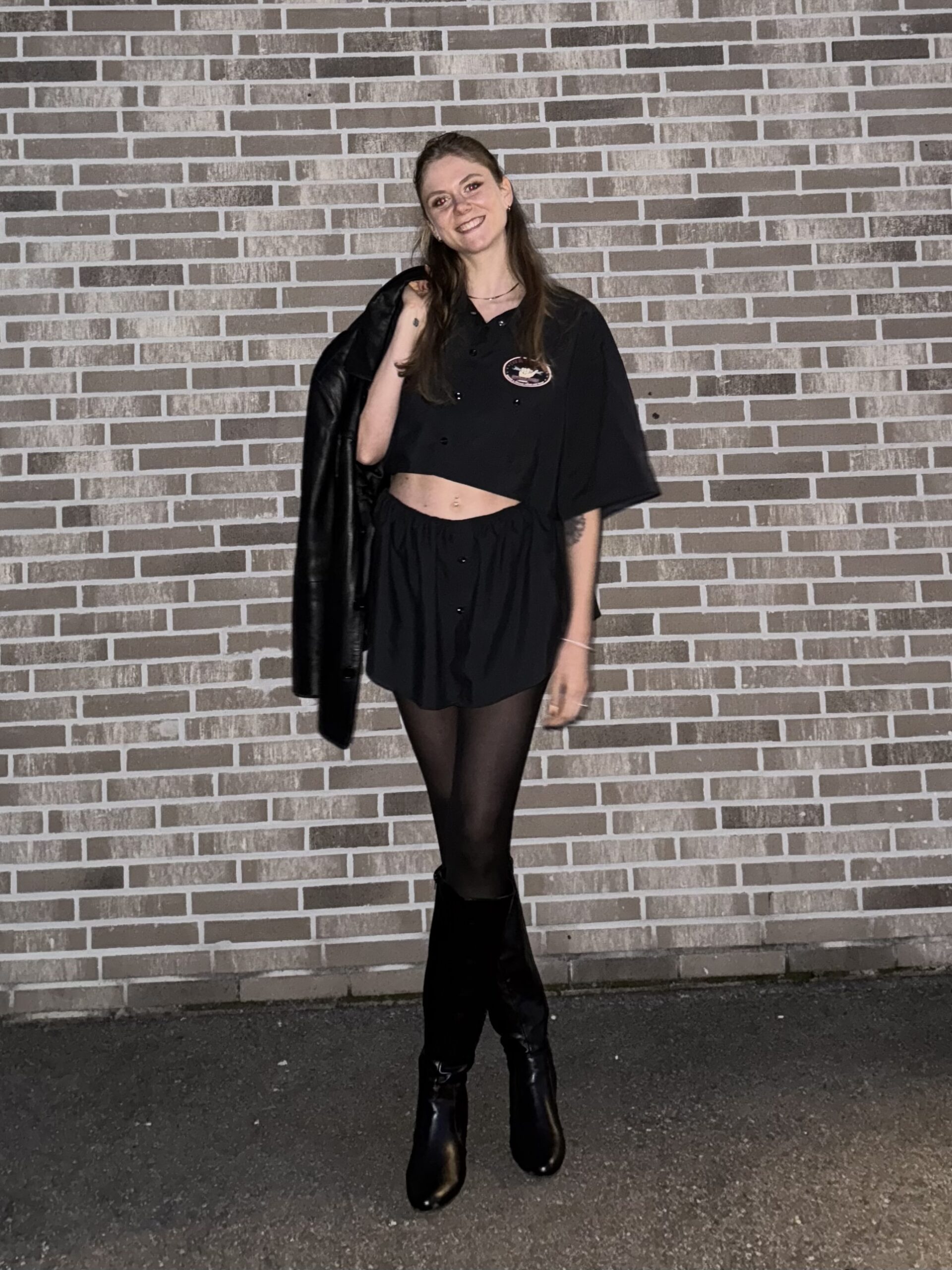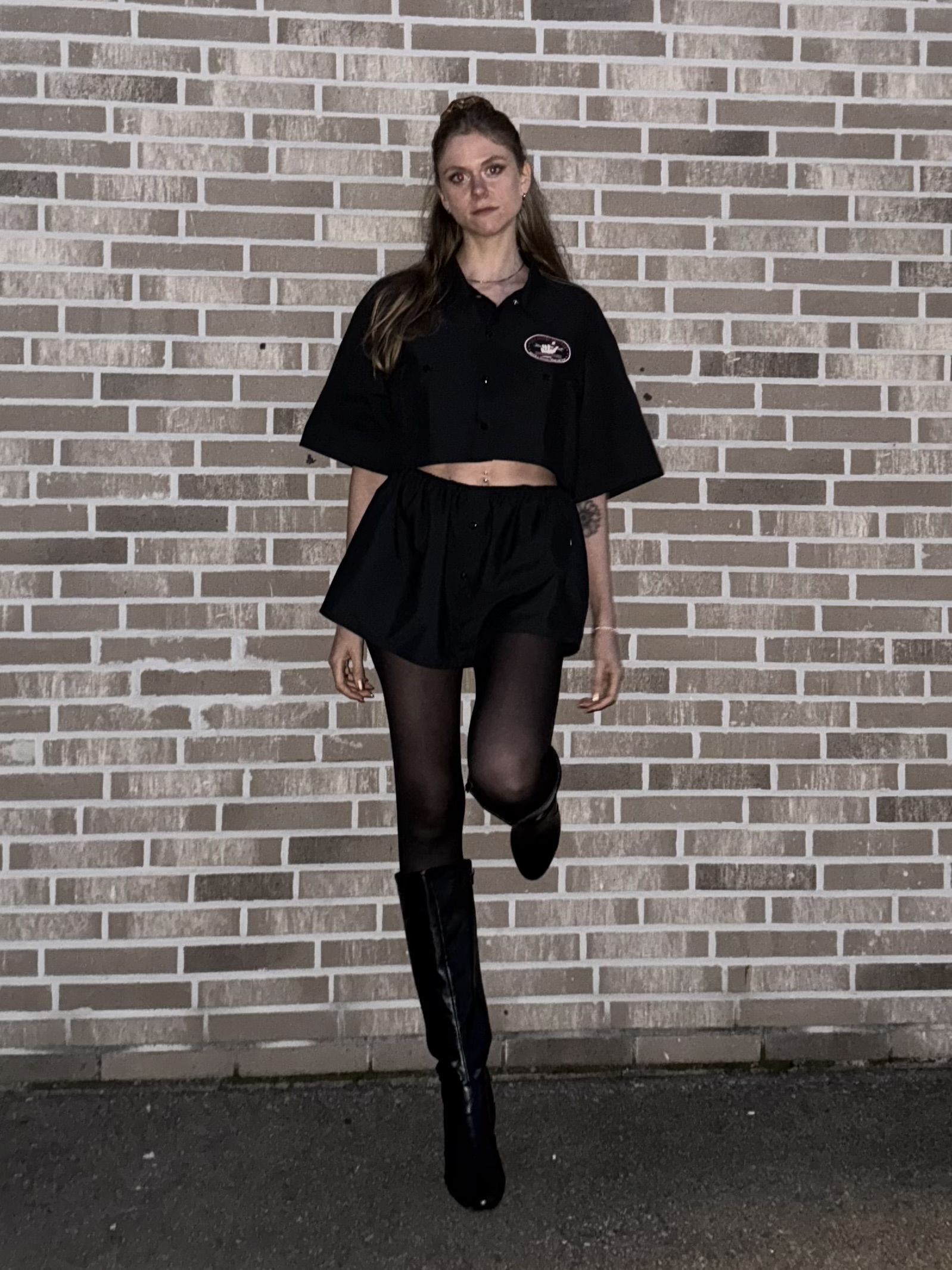 Dieses Upcycling-Zweiteiler-Set wurde aus einem alten Vintage Männerhemd gefertigt und verwandelt es in ein modernes Outfit – bestehend aus Cropped Shirt und passendem Rock.