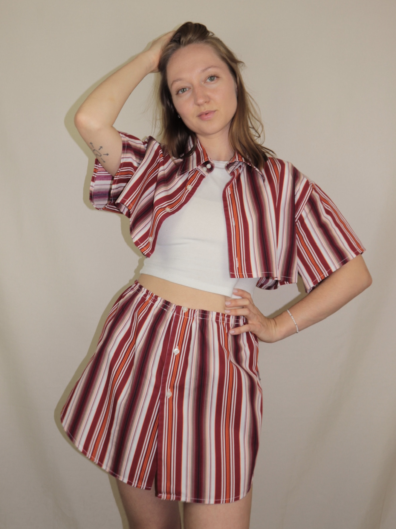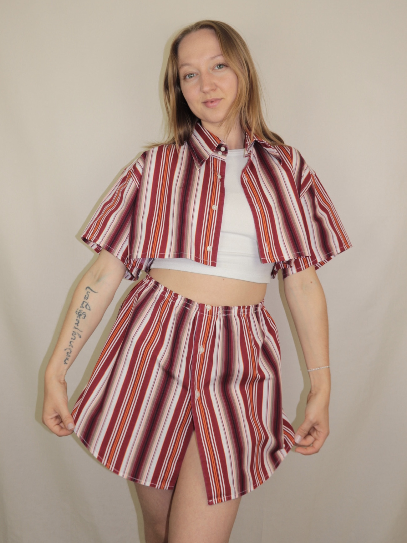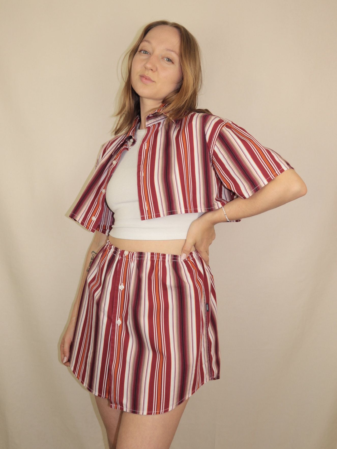 Upcycelt Zweiteiler Set rot gestreift | XS-S