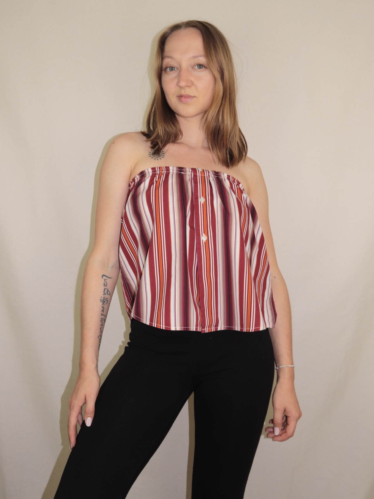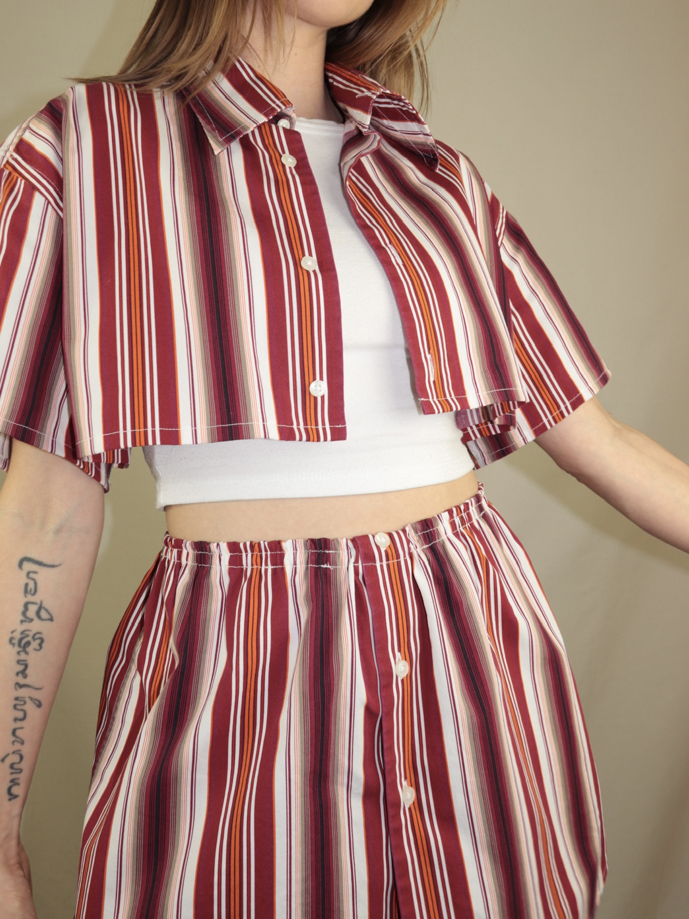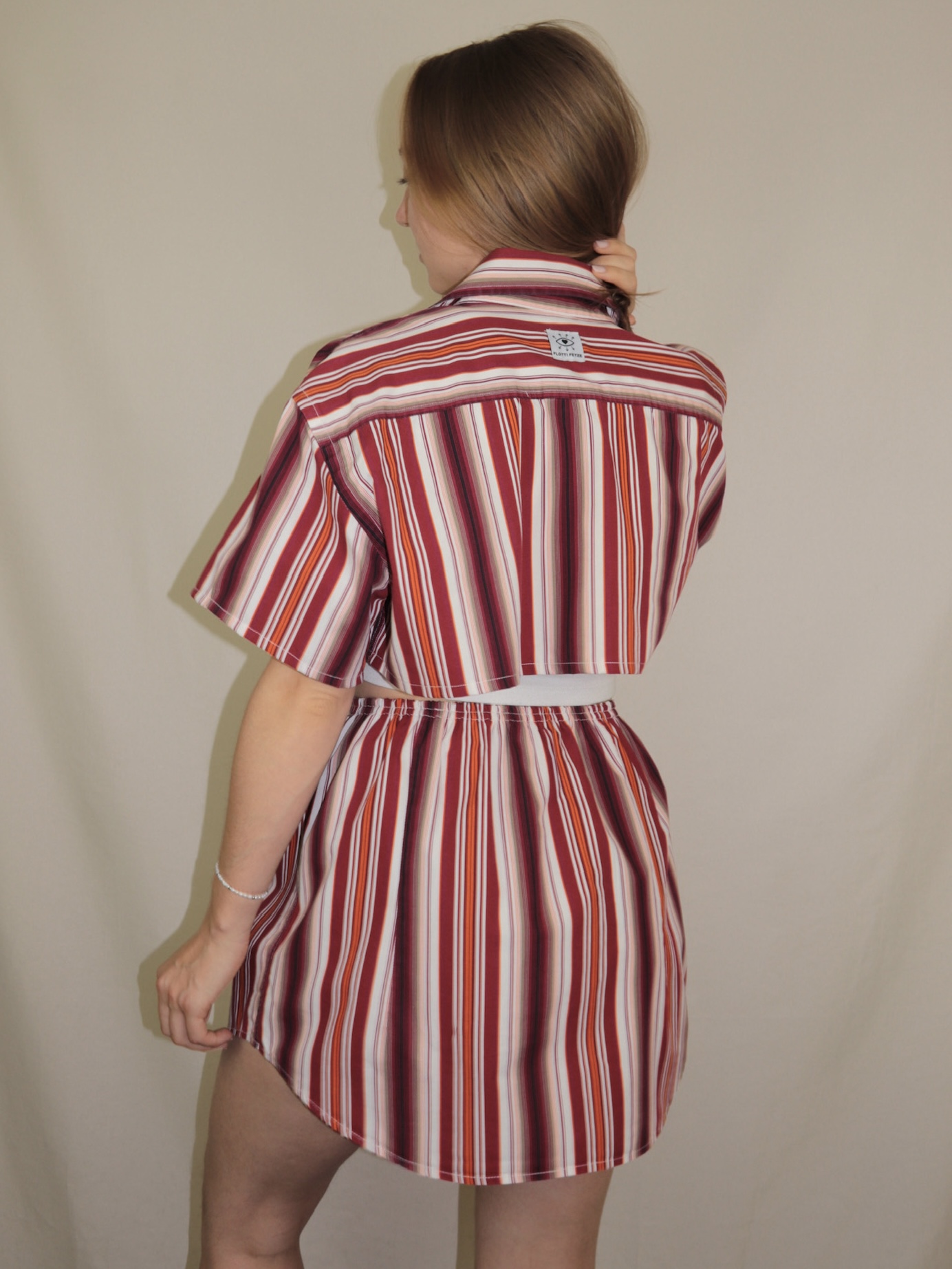 Upcycelt Zweiteiler Set rot gestreift | XS-S